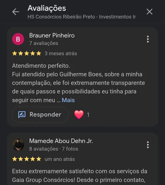 André Luiz Abbiati2025-08-13Trustindex verifica se a fonte original da avaliação é Google. Excelente empresa, recomendo! Taquara Pesca2025-08-12Trustindex verifica se a fonte original da avaliação é Google. Super recomendo! Já são duas cartas adquiridas, uma de automóvel contemplada em 12 meses, acessória do pessoal fez toda diferença para envolver o melhor plano de investimento! Nota 10 Douglas Silva2025-08-12Trustindex verifica se a fonte original da avaliação é Google. Gostaria de deixar aqui meu feedback a essa equipe maravilhosa da Gaia. Graças a eles eu tive resultado real, fui contemplado e com alto rendimento! O Método SPA, ensinado pelo Fernando Franchi me mostrou que é possível investir com segurança e lucrar muito. O Compra Garantida foi a chave para essa virada. Obrigado, GAIAGROUP! Obrigado, Fernando! Vocês são demais Moacyr Petrocelli2025-08-12Trustindex verifica se a fonte original da avaliação é Google. Excelentes serviços! Atendimento personalizado e assertivo para cada necessidade! Parabéns! Ruan Miller2025-08-12Trustindex verifica se a fonte original da avaliação é Google. Fui contemplado e o meu investimento disparou com o Compra Garantida! O Método SPA, do Fernando, entrega exatamente o que promete: lucros consistentes com segurança total. Minha maneira de investir nunca mais será a mesma. Valeu, GAIAGROUP! Gabriel Vicente2025-08-12Trustindex verifica se a fonte original da avaliação é Google. Uma empresa íntegra, correta e coerente! Com ótimo atendimento, que nos direciona sempre ao melhor investimento! Gaia é certeza de bons negócios! Paulo Cezar Gracias Junior2025-08-12Trustindex verifica se a fonte original da avaliação é Google. Tinha um certo receio com o consórcio até conhecer o escritório, após toda a explicação fiz uma carta e fui contemplado. Atualmente tenho mais de 4 carta de consórcio. Recomendo totalmente o escritório pelo seu atendimento e seriedade!